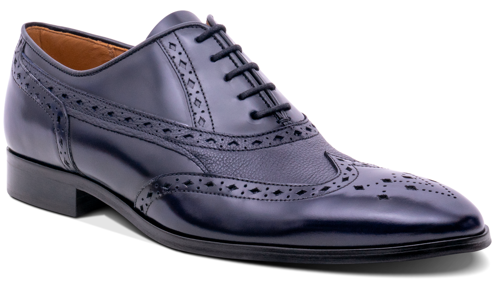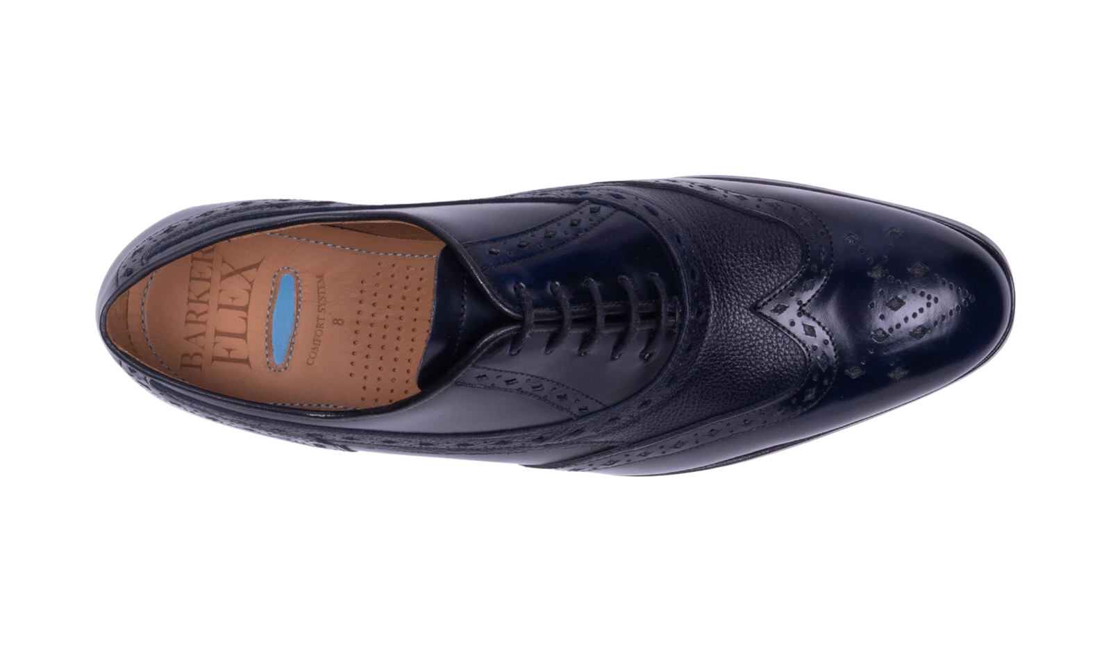 Introducing the Bampton Oxford Brogue. a true embodiment of classic elegance and sophistication. Designed in England and made in our partner factory in Portugal. this dress oxford brogue is perfect for any formal occasion. The diamond punch detailing adds a touch of decorative elegance. while the combination of high shine and grain leather creates a striking contrast. ensuring that this shoe will make a statement wherever it is worn.